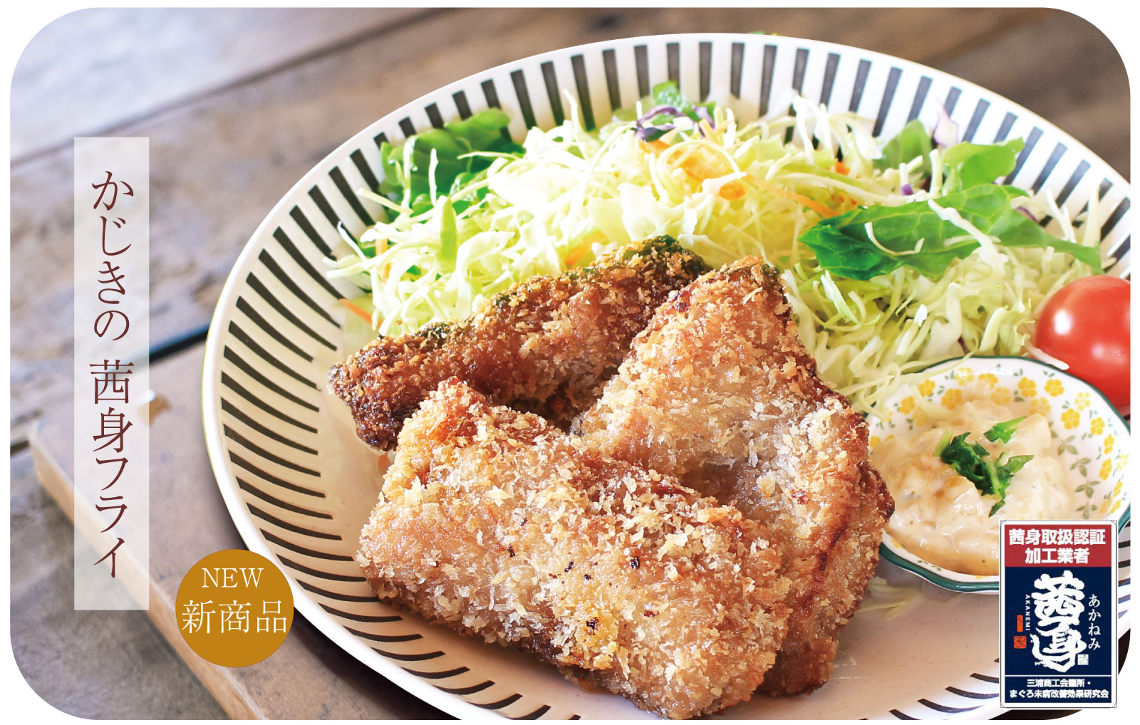 新商品! まぐろの茜身-あかねみ-(血合肉)に、近年発見されたセレノネインは強力な抗酸化作用があり、体内の酸化ストレスが改善されたり、老化抑制に役立つことが期待されています。多めの油で揚げ焼きするだけで簡単にお召し上がりいただけます。