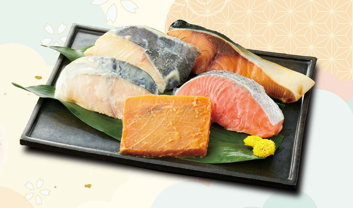 さまざまな美味しさを堪能できるよう、吟味した上質な魚を一切れずつ詰合せました。天然ぶりの味醂醤油漬の入った特別ギフトです。送料込みでお届けします。