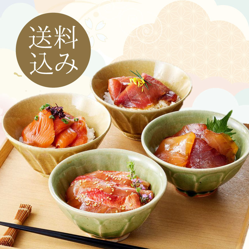 お得な送料込みギフト お茶碗サイズのミニづけ丼の具の詰合せ!袋を開けたらご飯の上に乗せるだけで本格づけ丼の出来上がりです。